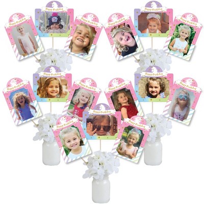 Big Dot of Happiness Rainbow Unicorn - Magical Unicorn Birthday Party Picture Centerpiece Sticks - Photo Table Toppers - 15 Pieces
