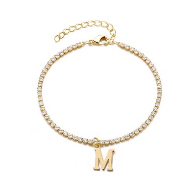 Adornia 14k Gold Plated Tennis Bracelet with Initial Charm