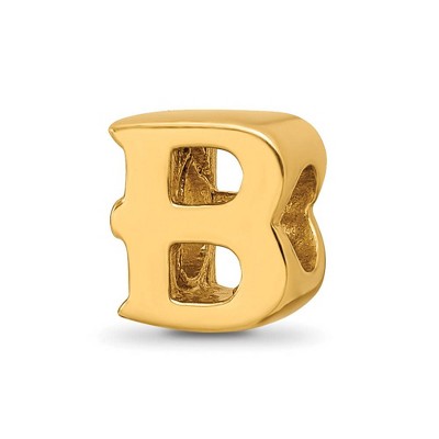 Black Bow Jewelry Letter B Bead Charm in 14k Yellow Gold Plated Sterling Silver