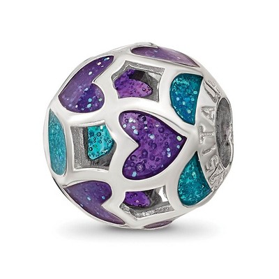 Black Bow Jewelry Sterling Silver Purple & Blue Heart Glitter Enameled Bead Charm
