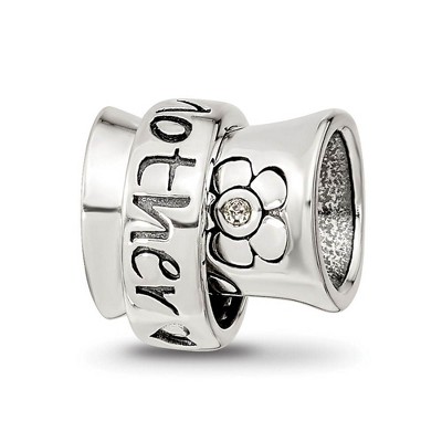 Black Bow Jewelry Sterling Silver and Blue-Green CZ Floral Connector Bead Charm