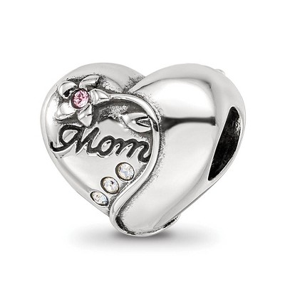 Black Bow Jewelry Sterling Silver with Crystals Vining Flower Mom Heart Bead Charm