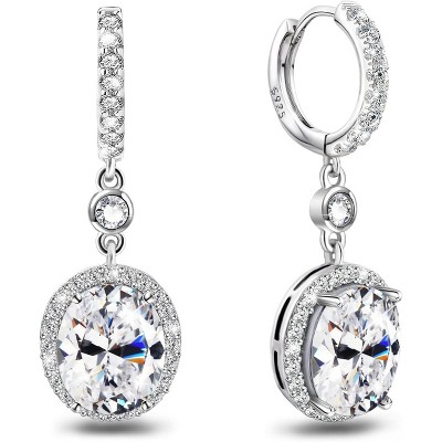 Sterling Silver Huggie Hoop Earrings with Oval CZ Charm, Hypoallergenic Bridal & Christmas Gift