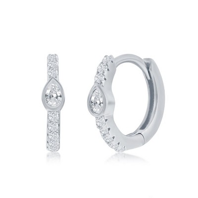 Bella Silver Sterling Silver 11MM Center Pearshaped CZ Huggie Hoop Earrings - Silver