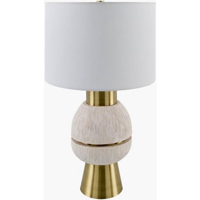 27"x14" Metal Inverted Cone Shaped Accent Lamp with Glass Ball Accent and Square Base Gold - Olivia & May: Linen Shade
