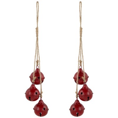 Northlight Cascading Christmas Jingle Bell Ornaments- 13.5" - Red - Set of 2