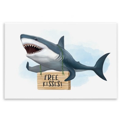 Stupell Industries Shark with Free Kisses Sign Wall Plaque Art, 19" x 13"