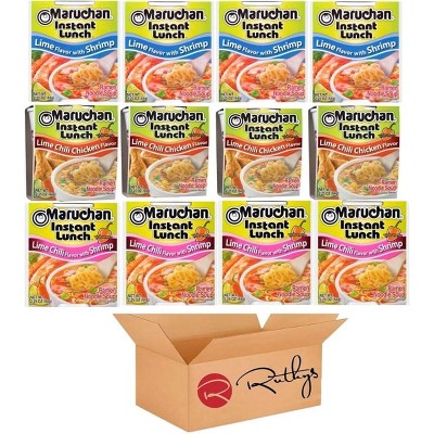 Maruchan Ramen Instant Noodle Soup Variety, 2 Flavors - 6 Packs Lime Chili Shrimp & 6 Packs Chili, 3 Ounce Single Servings