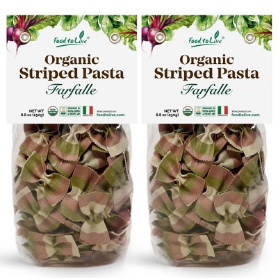 Organic Striped Farfalle Pasta - Italian Artisan Tri-Color Bow-Tie Pasta. Non-GMO, Vegan, Made with Semolina, Beet and Spinach.