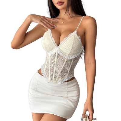 Coolmee Women's Corset Tops Going Out Lace Mesh Date Night Fashion Outfits Clothes Crop Cute Party Strap Tank