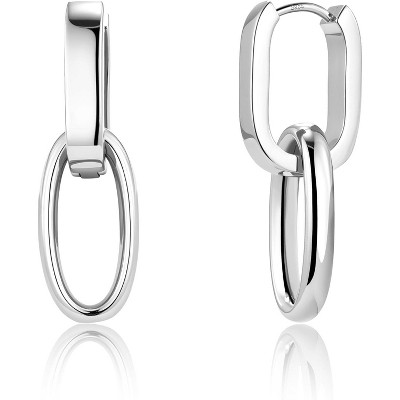 Gold Plated Sterling Silver Dangle Earrings - Small Square Huggie Paperclip Hoop Drop Earrings