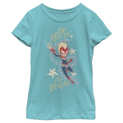 Girl's Marvel Christmas Captain Marvel Merry & Bright T-Shirt