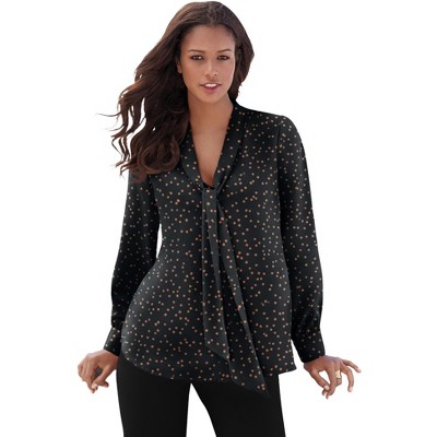 Agnes Orinda Women's Plus Size Swiss Dots Chiffon V Neck Long Sleeve Casual Babydoll Blouses