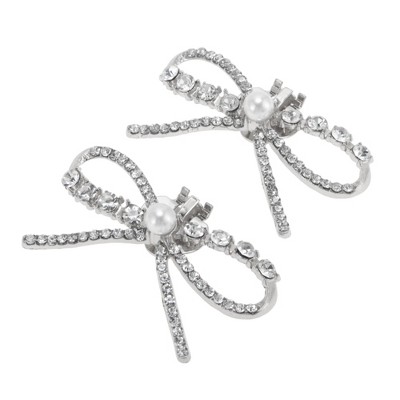 Unique Bargains Women's Rhinestone Shoe Clips Silver Tone 2 Pcs