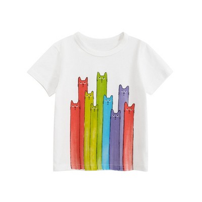 MyKids-USA Summer Girls’ Cartoon Cats Pattern Printed T-shirt in European and American Style