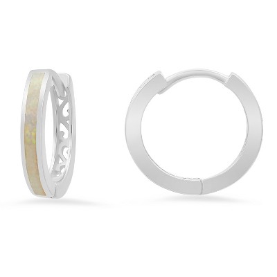 Queen Jewels Sterling Silver Opal Filigree Hoop Earrings