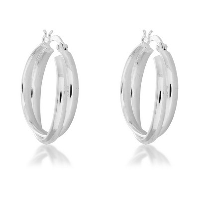 Bella Silver Sterling Silver Double Hoop Earrings - Silver
