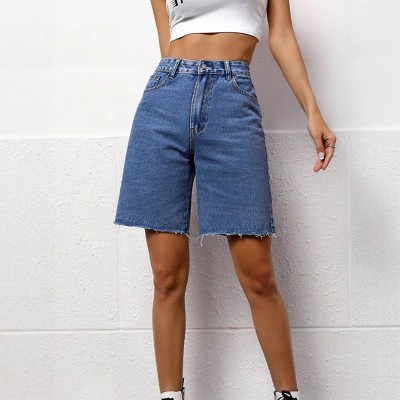 Women's High-Waisted Denim Shorts Ripped Frayed Hem Casual Summer Jean Shorts