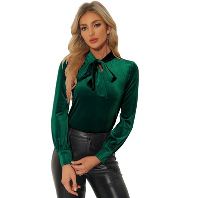 INSPIRE CHIC Women's Vintage Solid Gothic Velvet Dressy Bow Tie Neck Business Shirt