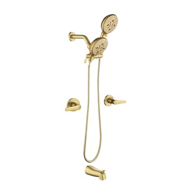Cobbe Brushed Gold Single Handle Wall Mounted Shower Set with 10-Inch Overhead Rainfall Sprayer 7 Settings Handheld Showerhead and Tub Spout