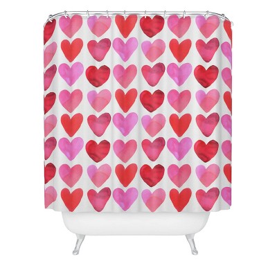 Amy Sia Heart Watercolor Shower Curtain Red - Deny Designs: Abstract Microfiber, Machine Washable, Buttonhole Top
