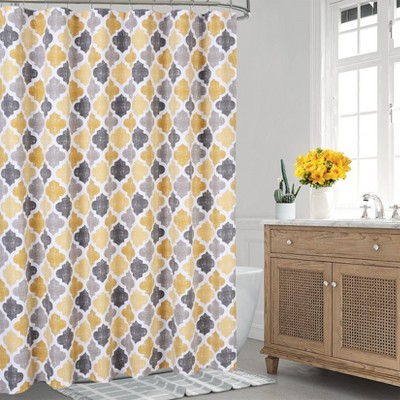 Durable Decorative Shower Curtain with Geometric Four-Leaf Pattern, Poly-Cotton Blend Fabric for Hotel Style Bathrooms, 72*72in, Yellow Blue Green