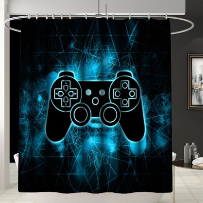 70.8" Game Shower Curtain for Boy - Blue and Black Gaming Kids Gamer Waterproof Polyester Shower Curtains