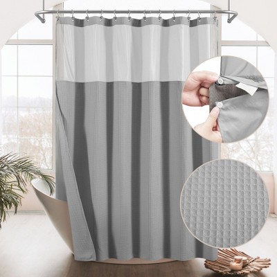 Fabric Shower Curtain Waffle Weave, 230 GSM Heavy Duty, Weighted Hem, 14 Metal Hooks, Water Repellent, Washable