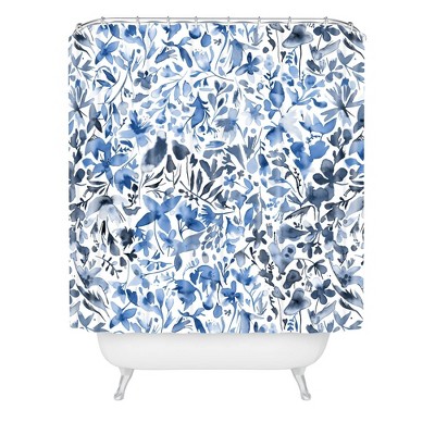 Avenie Boho Daisies Cobalt Blue Shower Curtain Blue - Deny Designs: Abstract Microfiber Bath Decor with Buttonhole Top