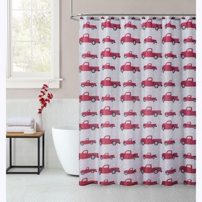 Kate Aurora Tis' The Season Holiday Christmas Trucks Fabric Shower Curtain With 12 Matching Hooks