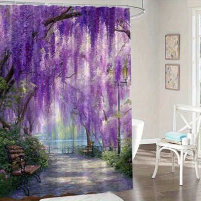 Lomsoe 1PC Romantic Shower Curtain with Purple Flowers Bathroom Decor Hooks.