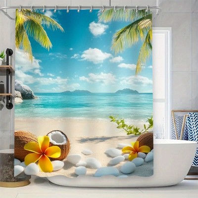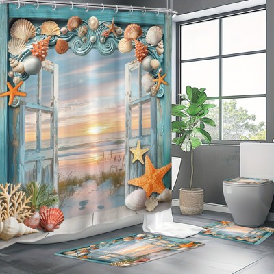 Lomsoe 4PCS Refreshing And Cozy Beach-Themed Shower Curtain Set, Machine Washable Decor for Home.