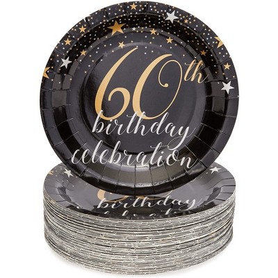 Sparkle and Bash 80-Pack 60th Birthday Disposable Paper Plates 9" Black Party Supplies