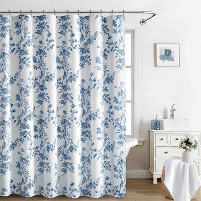 Pink Shower Curtain Floral Cotton Linen Cottagecore Shower Curtain for Bathroom 70.8x70.8 Inch