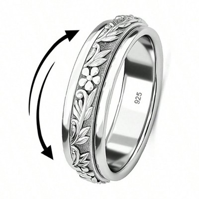 Sterling Silver Spinner Fidget Ring for Women - Moon Star Platinum Plated Anxiety Relief Gift