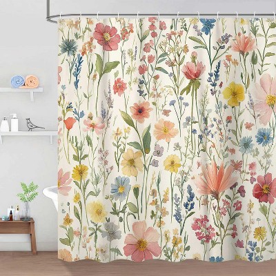 Floral Shower Curtain, 70.8" Vintage Flower Watercolor Plant Style Shower Curtain, Boho Colorful Wildflower
