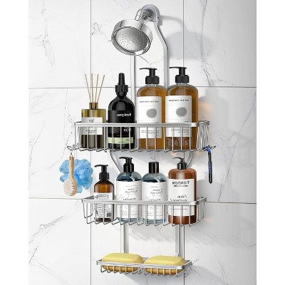 Silver Rustproof No Drill Hanging Shower Caddy - Over Showerhead Bathroom Organizer for Shampoo & Soap