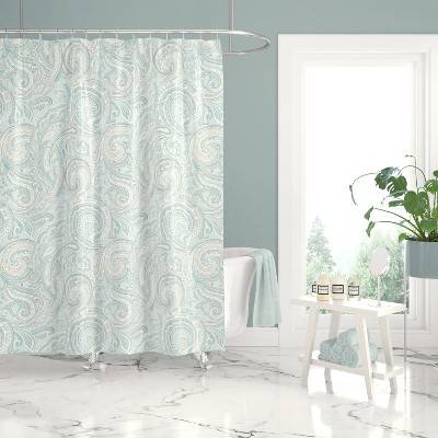 Dainty Home Stella 3D Floral Chenille Embroidered Linen Textured Shower Curtain
