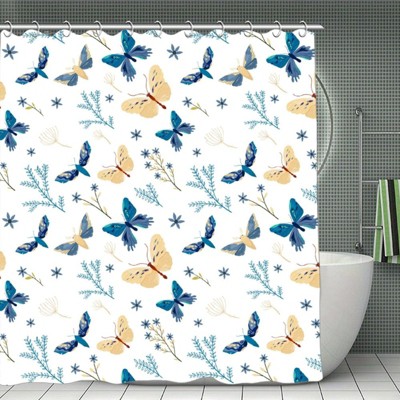 Iris Floral Shower Curtain Spring Flower Dragonfly Shower Curtains for Bathroom 70.8x70.8 Inch
