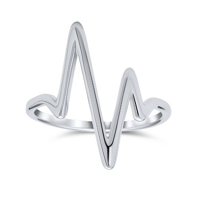 Bling Jewelry Geometric Stackable Chevron Lightening Bolt Heartbeat Ring Sterling Silver 1MM Band