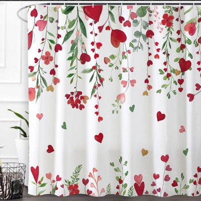 Hearts and Flowers Leaf Valentine's Day Shower Curtains for Bathroom Waterproof Bath Curtain Durable Soft Stylish Bathroom Decor 72x72 Inch