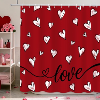 Valentine's Day Black Graffiti Heart 'Welcome' Shower Curtain - Waterproof Polyester, Wrinkle Resistant 70.8x70.8Inch