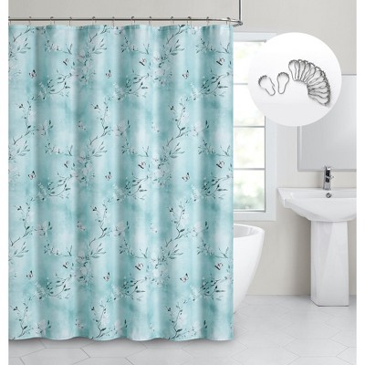 Dainty Home Cascading Florals 3D Textured Fabric Shower Curtain with 12 Metal Rollerball Hooks, 70" x 72"
