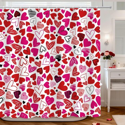 70.8"Cute Valentine's Day Shower Curtain Set Funny Abstract Modern Red and Black Hearts Shower Curtain