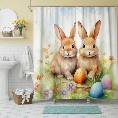 Cute Easter Rabbit Valentine's Day Shower Curtains for Bathroom Waterproof Bath Curtain Durable Soft Stylish Bathroom Decor 72x72 Inch
