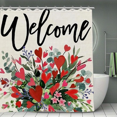 Valentine's Day Floral Hearts 'Welcome' Shower Curtain - Waterproof Polyester, Soft & Durable 70.8x70.8Inch