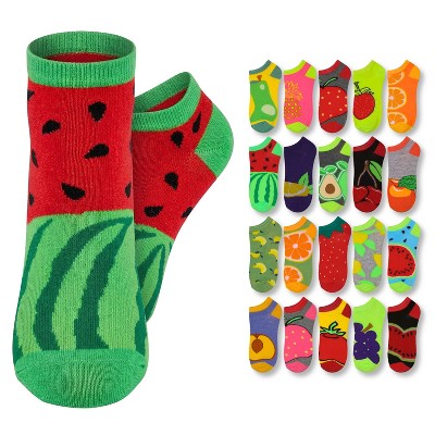 Tipi Toe Women's 20 Pairs Colorful Red Dark Colored Seed Fruity Patterned Low Cut Socks