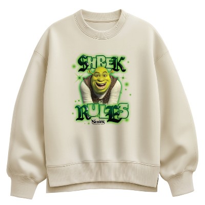 Women's - Shrek - Airbrush Shrek Rules Oversized Fleece Crew Sweatshirt