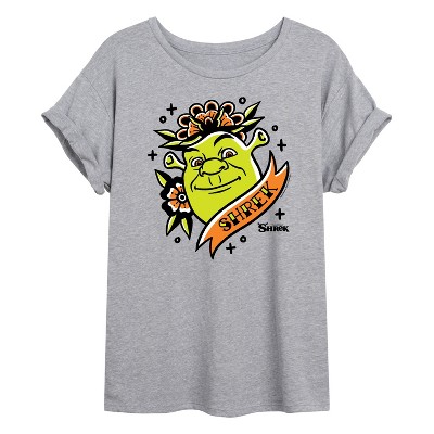 Women's - Shrek - Shrek Tattoo Portrait Oversized Graphic T-Shirt