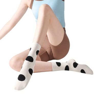 Anna-Kaci 2 Pairs Womens Polka Dot Cotton Crew Socks with Non Slip Grip Sole